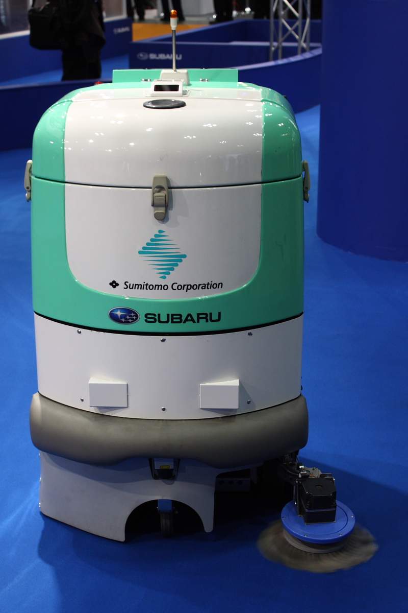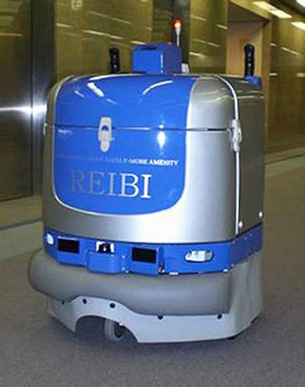• Without human assistance or supervision, the cleaning robot opens the elevator door and gives the elevator directions about which floor to stop on by interfacing with it via the optical transmission devices installed in both the robot and the elevator. When the elevator arrives at the correct floor, the robot disembarks. The process is thus very similar to the way people ride elevators.